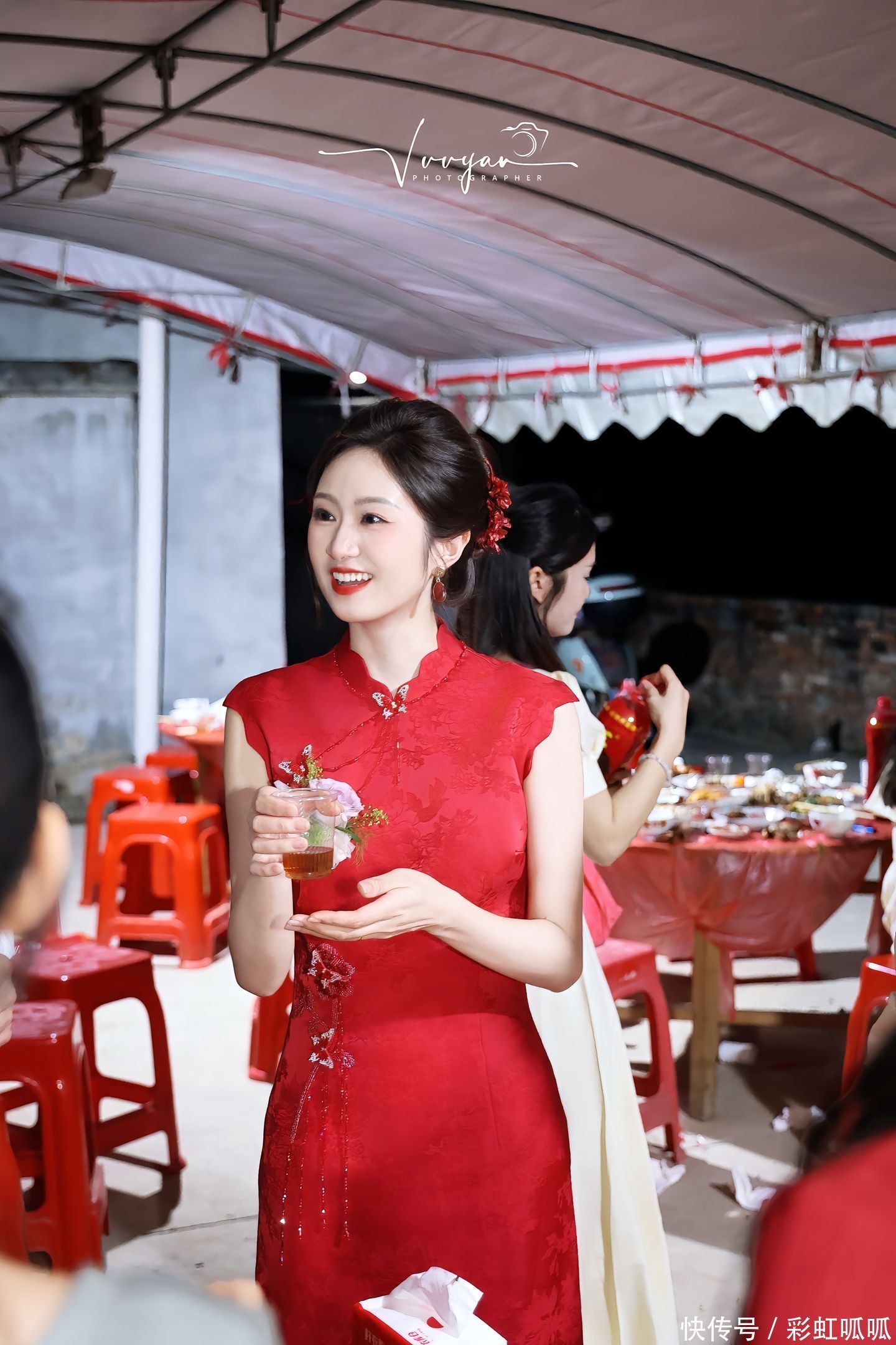 在乡土间的婚礼里,没有精致的宴会厅,却有红绸搭起的彩门;