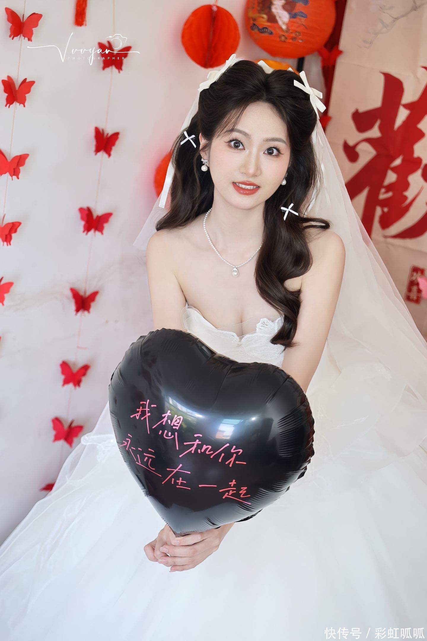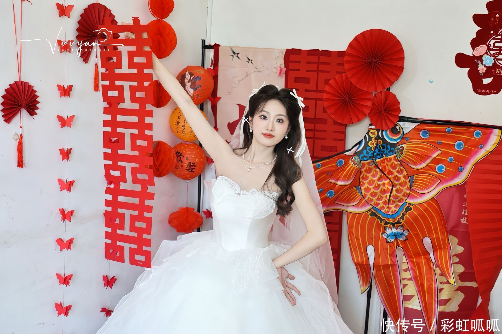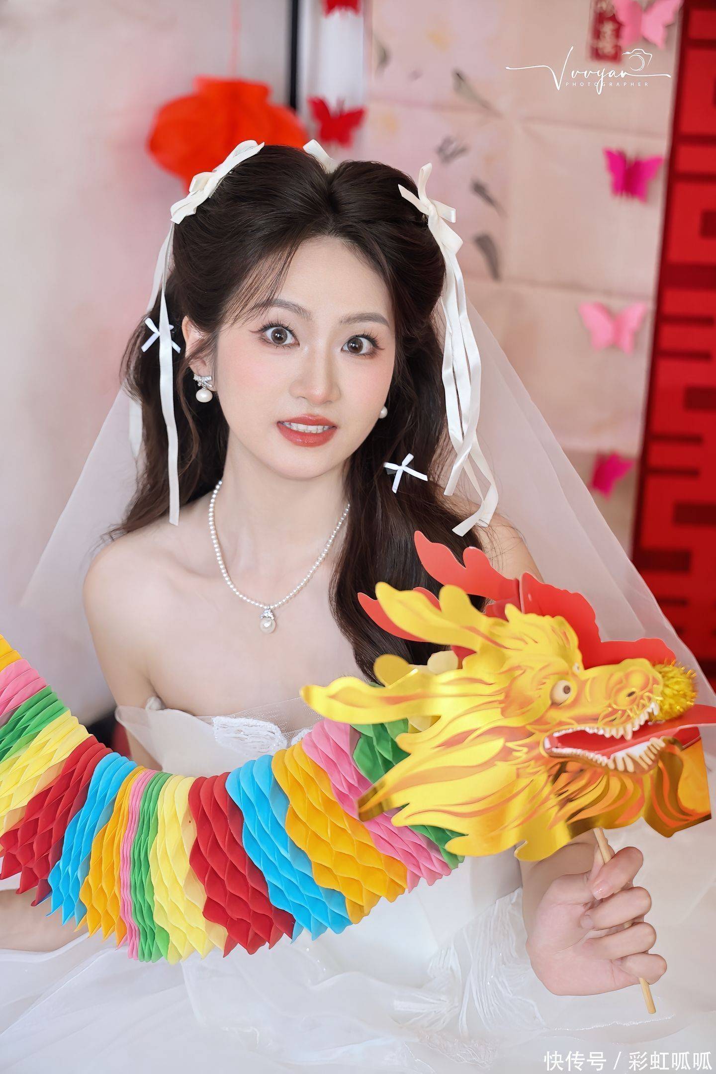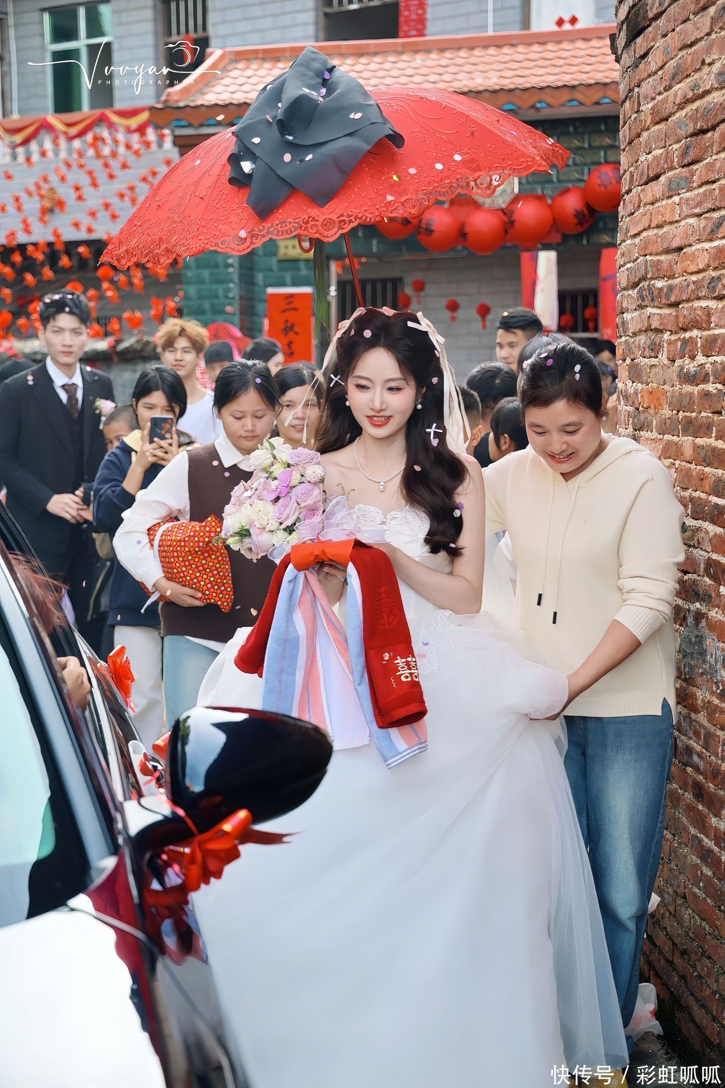 旁边的年轻姑娘举着手机,笑着回应:“我早就听说了,好多人都等着拍新娘呢,说不定能火!”