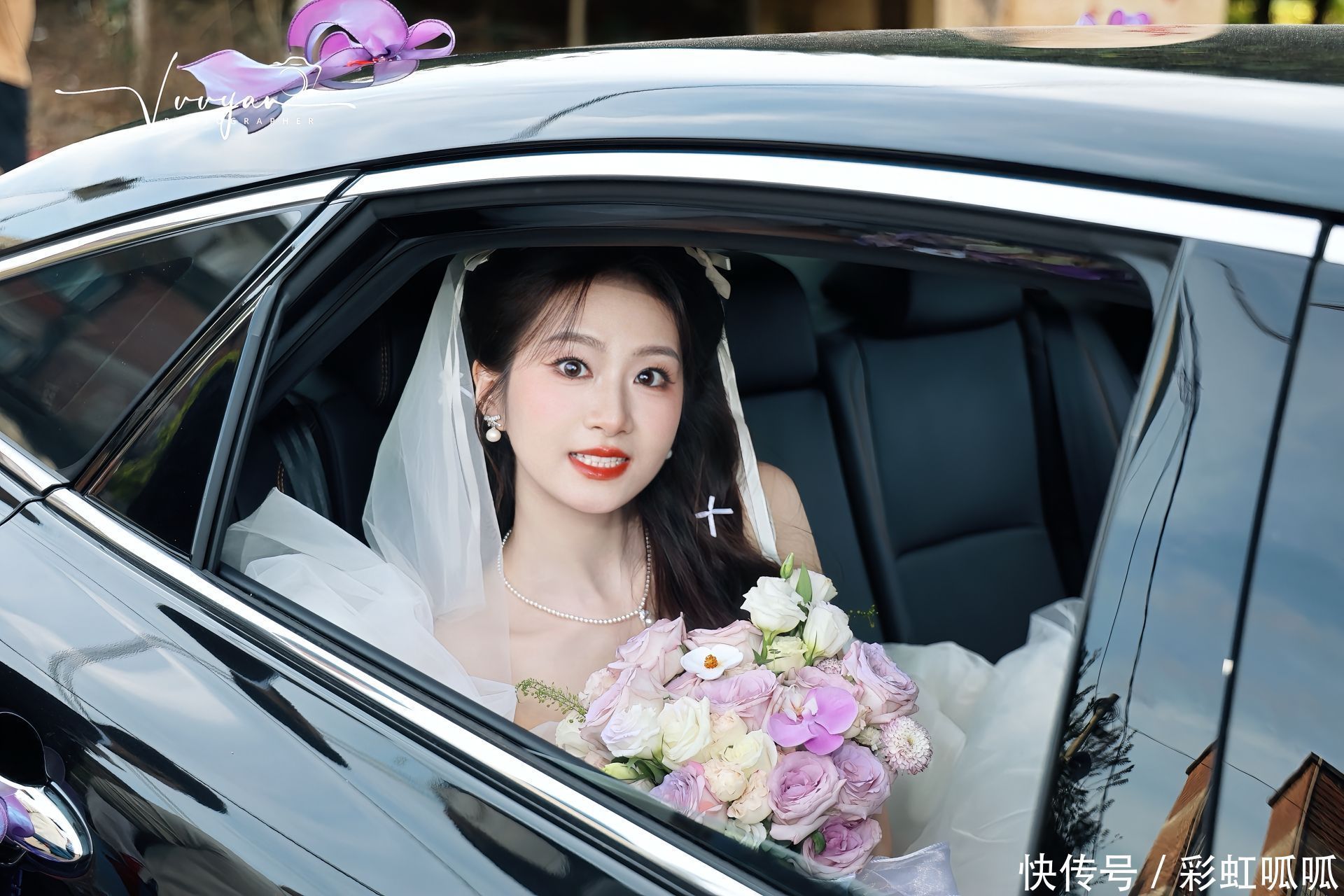 新娘抿着嘴笑,轻轻“嗯”了一声,眼里的光比手里的花束还要亮。